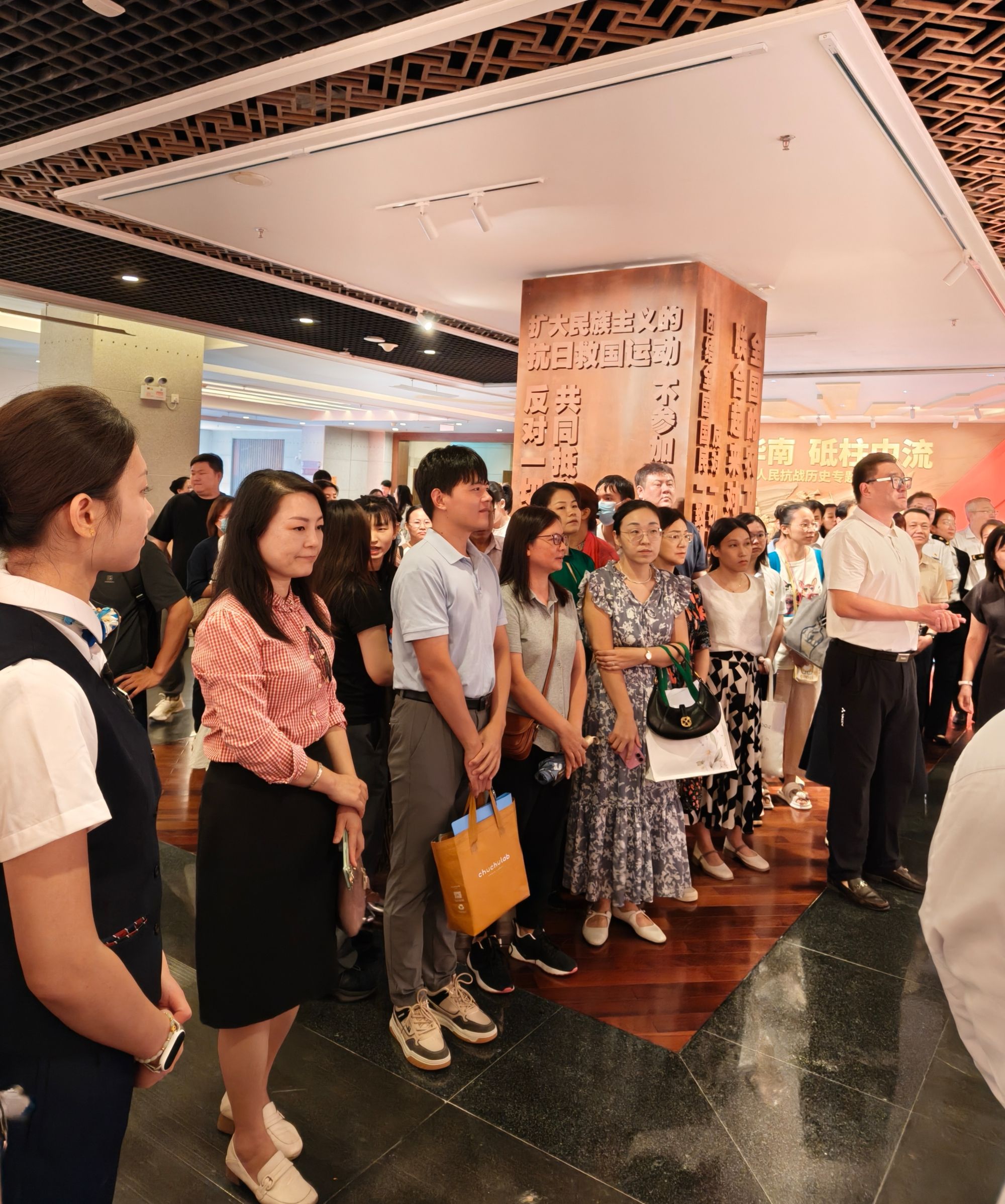 在展厅内,大家跟随讲解员在一幅幅珍贵的历史照片、一件件真实的实物展品、一份份厚重的文献档案前驻足凝视。通过详实的史料,华南人民同仇敌忾、不畏牺牲的抗战历史画卷徐徐展开,革命先辈共御外侮、抗击侵略的坚定信念和团结一心、不屈不挠的民族精神深深震撼了每一位参观者。